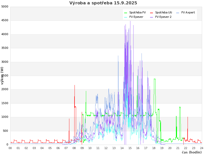 | Den | FV výroba (kWh) | Spotřeba (kWh) | Odběr ze sítě (kWh) | Soběstačnost (%) |