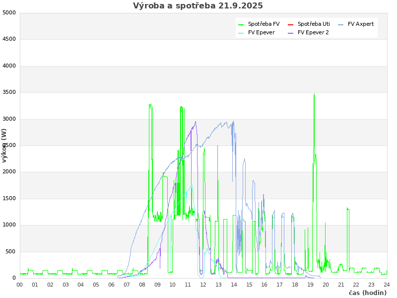 | Den | FV výroba (kWh) | Spotřeba (kWh) | Odběr ze sítě (kWh) | Soběstačnost (%) |