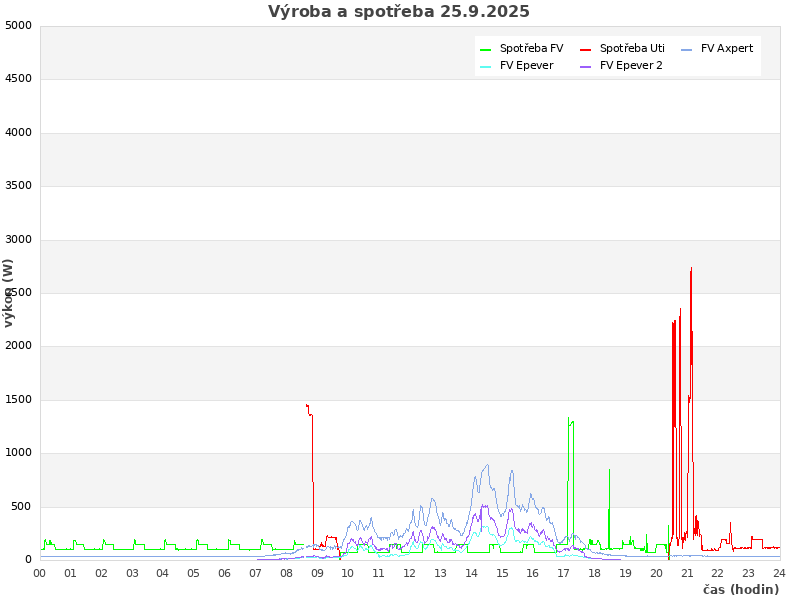 | Den | FV výroba (kWh) | Spotřeba (kWh) | Odběr ze sítě (kWh) | Soběstačnost (%) |