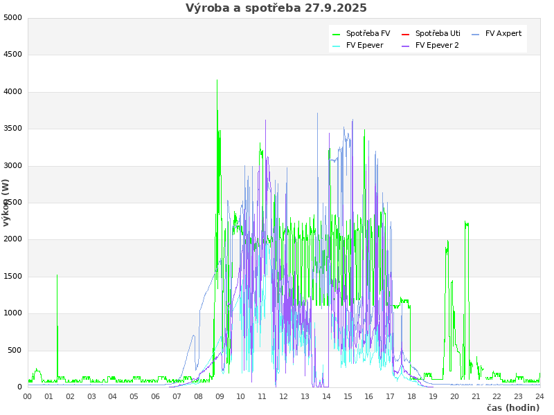 | Den | FV výroba (kWh) | Spotřeba (kWh) | Odběr ze sítě (kWh) | Soběstačnost (%) |