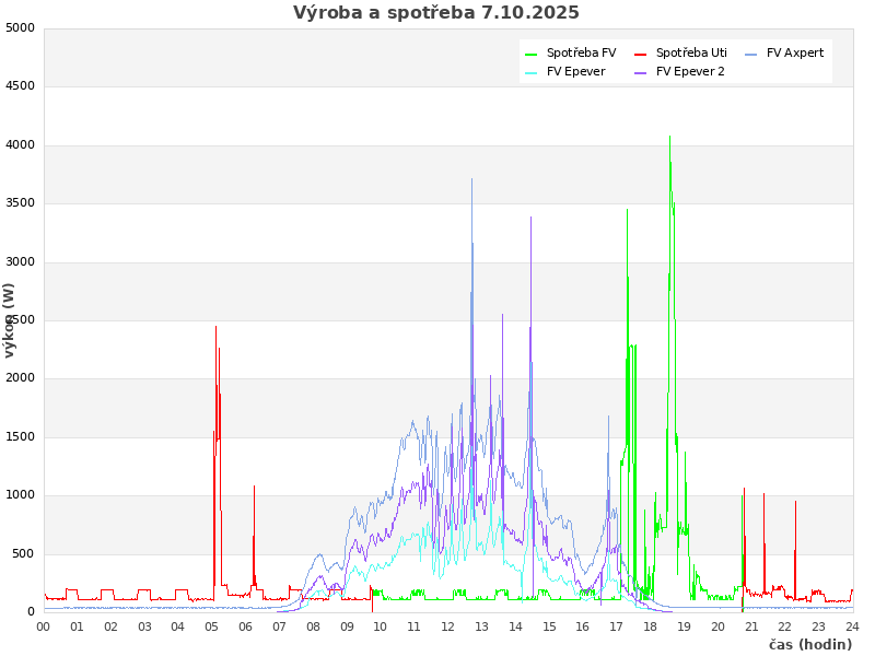 | Den | FV výroba (kWh) | Spotřeba (kWh) | Odběr ze sítě (kWh) | Soběstačnost (%) |