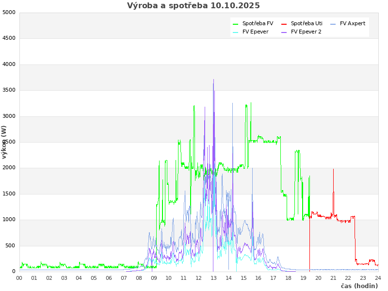 | Den | FV výroba (kWh) | Spotřeba (kWh) | Odběr ze sítě (kWh) | Soběstačnost (%) |