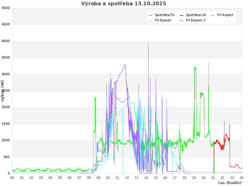 | Den | FV výroba (kWh) | Spotřeba (kWh) | Odběr ze sítě (kWh) | Soběstačnost (%) |