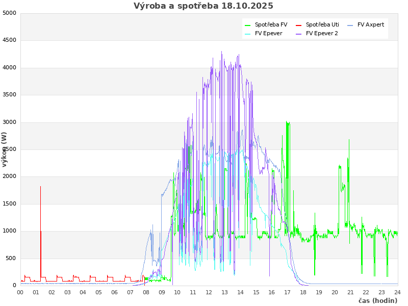 | Den | FV výroba (kWh) | Spotřeba (kWh) | Odběr ze sítě (kWh) | Soběstačnost (%) |