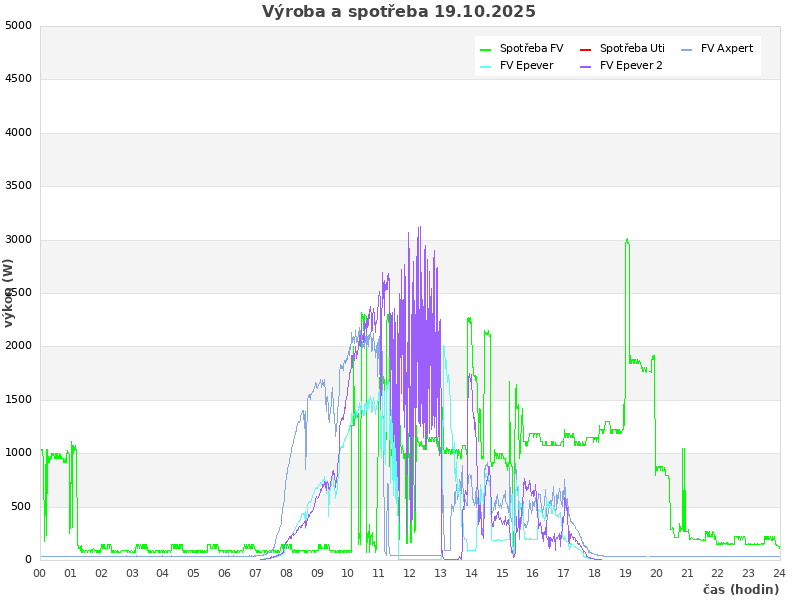 | Den | FV výroba (kWh) | Spotřeba (kWh) | Odběr ze sítě (kWh) | Soběstačnost (%) |