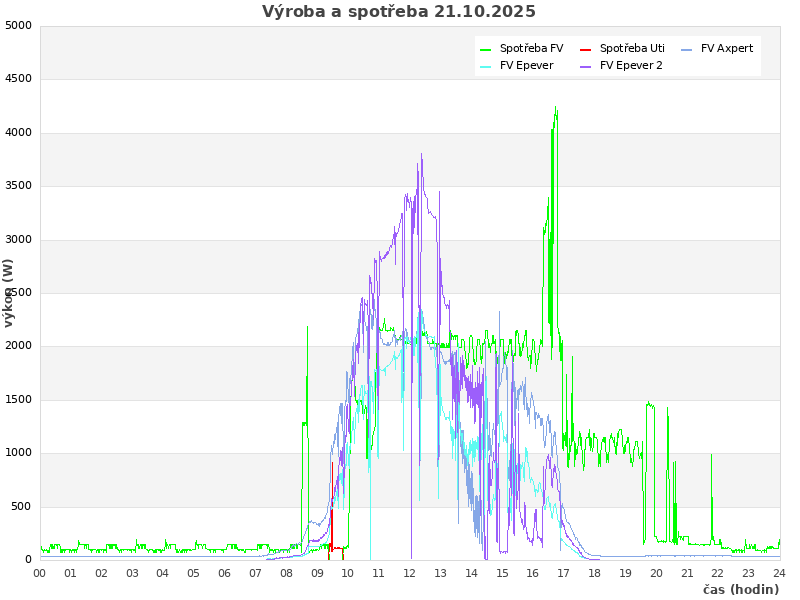| Den | FV výroba (kWh) | Spotřeba (kWh) | Odběr ze sítě (kWh) | Soběstačnost (%) |