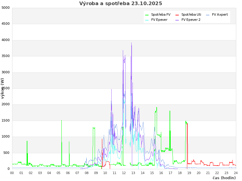 | Den | FV výroba (kWh) | Spotřeba (kWh) | Odběr ze sítě (kWh) | Soběstačnost (%) |