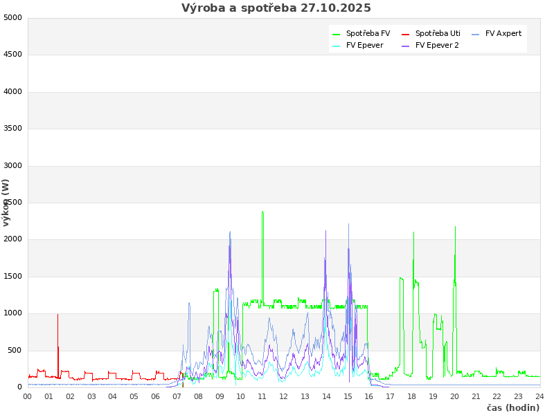 | Den | FV výroba (kWh) | Spotřeba (kWh) | Odběr ze sítě (kWh) | Soběstačnost (%) |
