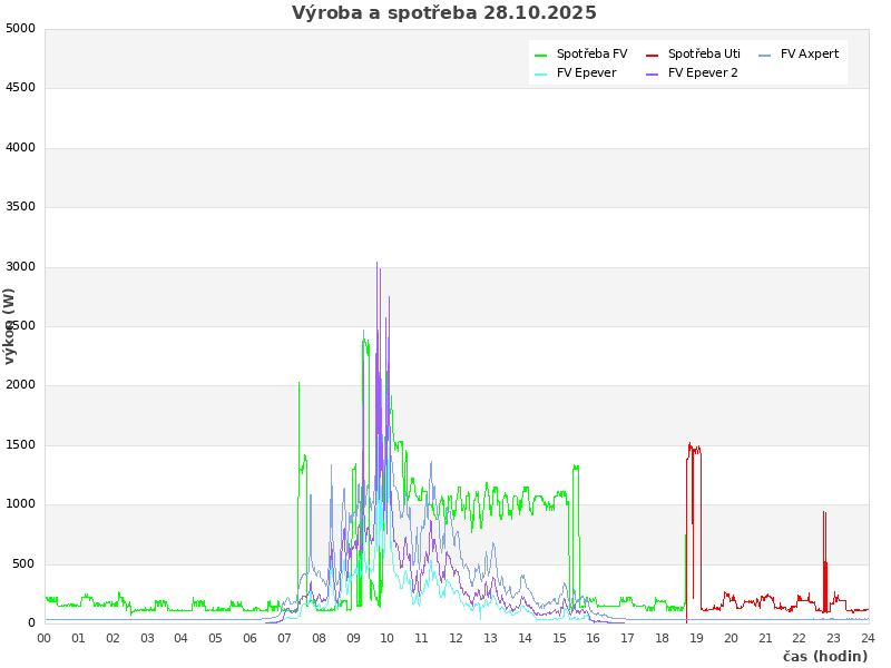 | Den | FV výroba (kWh) | Spotřeba (kWh) | Odběr ze sítě (kWh) | Soběstačnost (%) |