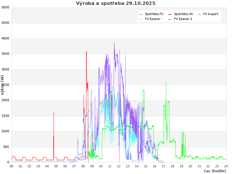 | Den | FV výroba (kWh) | Spotřeba (kWh) | Odběr ze sítě (kWh) | Soběstačnost (%) |