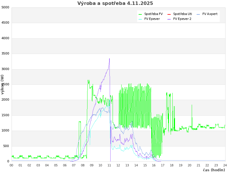 | Den | FV výroba (kWh) | Spotřeba (kWh) | Odběr ze sítě (kWh) | Soběstačnost (%) |
