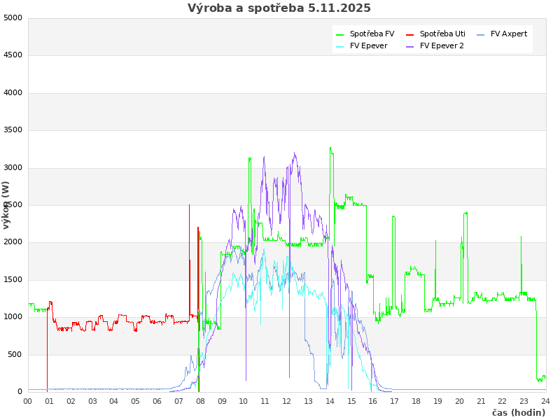| Den | FV výroba (kWh) | Spotřeba (kWh) | Odběr ze sítě (kWh) | Soběstačnost (%) |