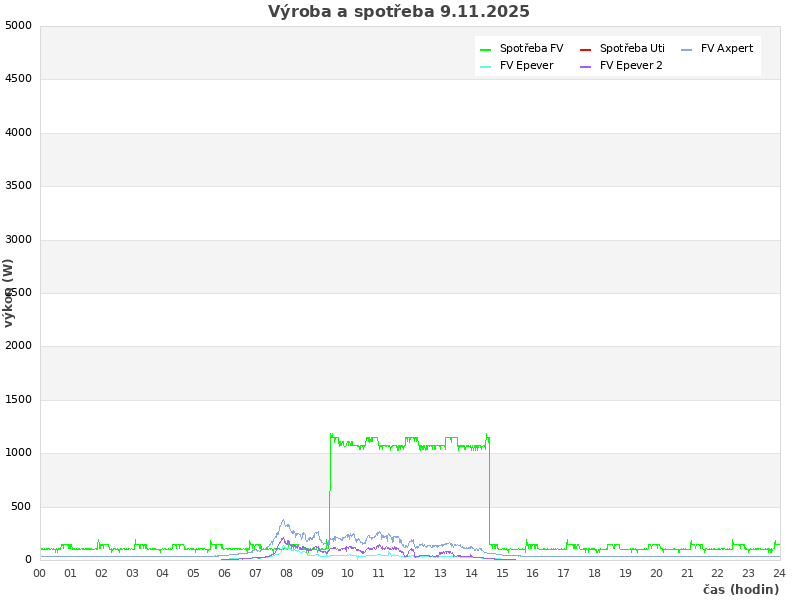 Studer (zasuvky): 913 W, rele: 0 (0=baterie; 1=Uti)