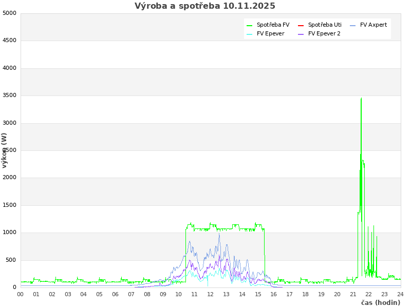| Den | FV výroba (kWh) | Spotřeba (kWh) | Odběr ze sítě (kWh) | Soběstačnost (%) |