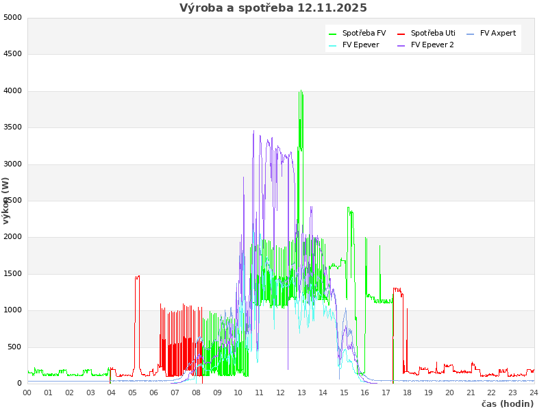 | Den | FV výroba (kWh) | Spotřeba (kWh) | Odběr ze sítě (kWh) | Soběstačnost (%) |