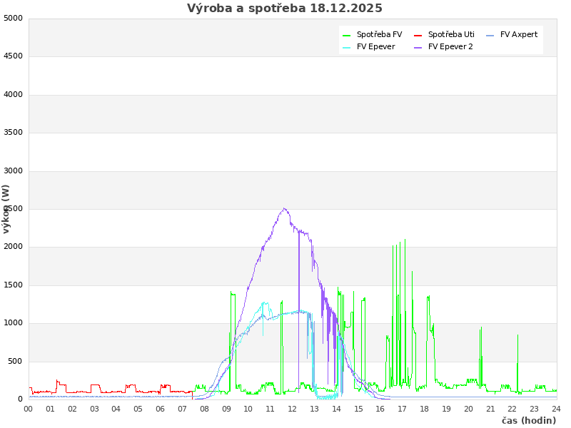 | Den | FV výroba (kWh) | Spotřeba (kWh) | Odběr ze sítě (kWh) | Soběstačnost (%) |