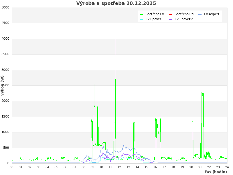 | Den | FV výroba (kWh) | Spotřeba (kWh) | Odběr ze sítě (kWh) | Soběstačnost (%) |