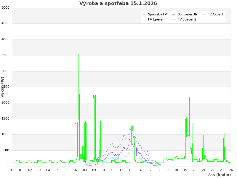 Studer (zasuvky): 152 W, rele: 0 (0=baterie; 1=Uti)