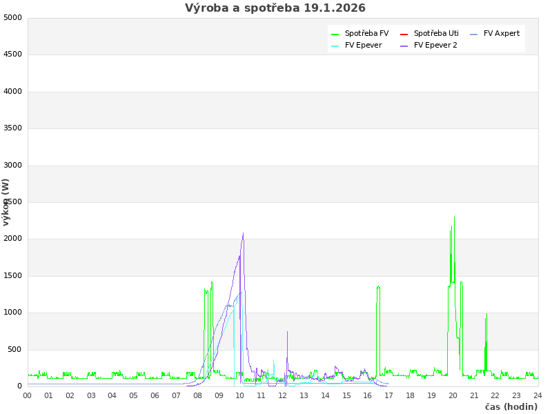 Studer (zasuvky): 114 W, rele: 0 (0=baterie; 1=Uti)