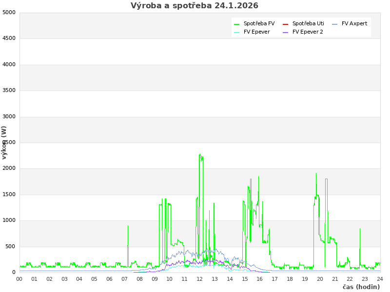 Studer (zasuvky): 114 W, rele: 0 (0=baterie; 1=Uti)