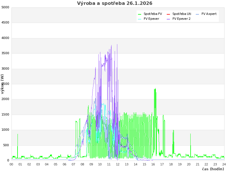 Studer (zasuvky): 152 W, rele: 0 (0=baterie; 1=Uti)