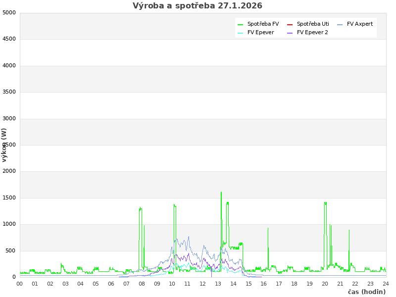 Studer (zasuvky): 152 W, rele: 0 (0=baterie; 1=Uti)