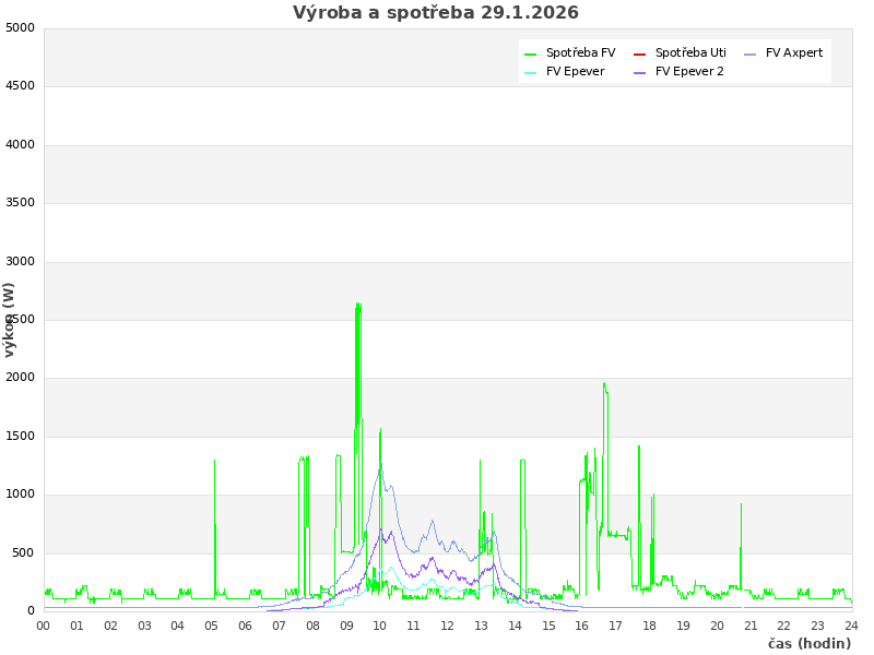 | Den | FV výroba (kWh) | Spotřeba (kWh) | Odběr ze sítě (kWh) | Soběstačnost (%) |