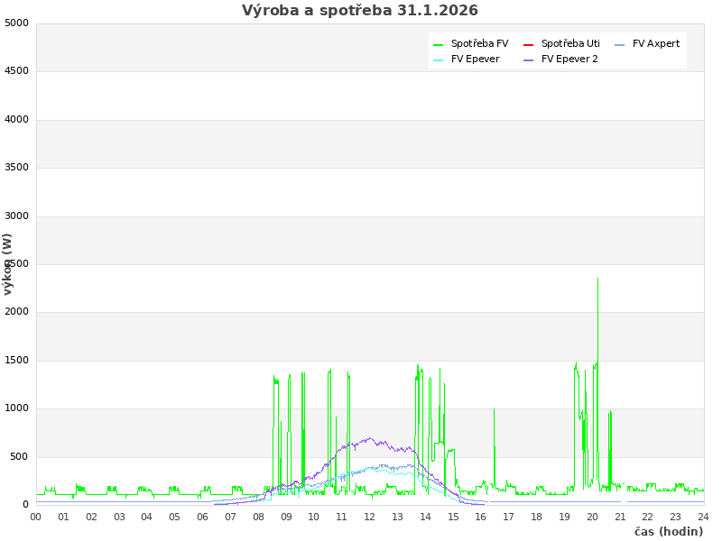 Studer (zasuvky): 114 W, rele: 0 (0=baterie; 1=Uti)