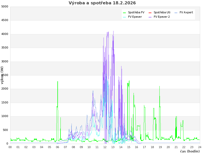| Den | FV výroba (kWh) | Spotřeba (kWh) | Odběr ze sítě (kWh) | Soběstačnost (%) |
