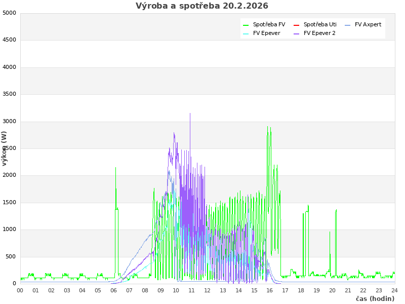 Studer (zasuvky): 114 W, rele: 0 (0=baterie; 1=Uti)