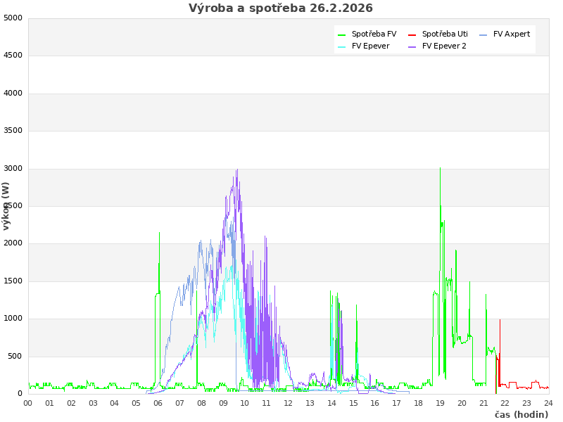 Studer (zasuvky): 239 W, rele: 0 (0=baterie; 1=Uti)