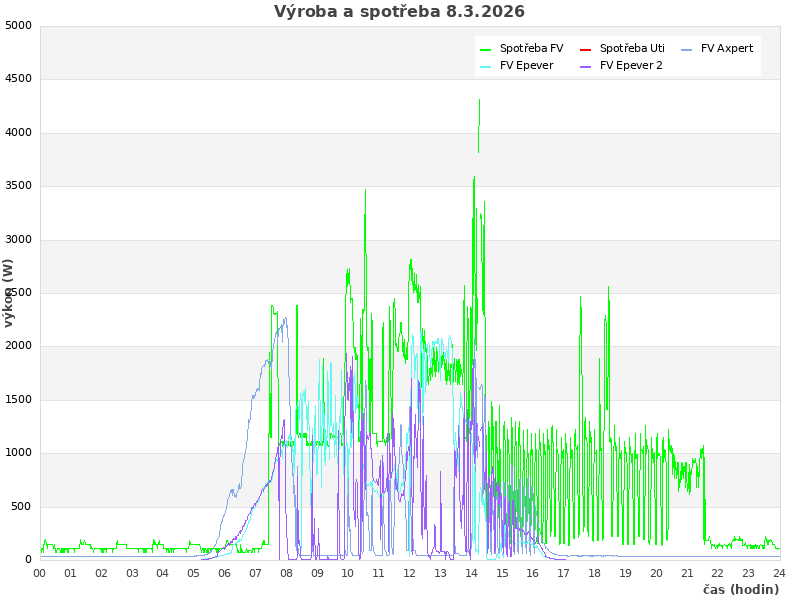 Studer (zasuvky): 1075 W, rele: 0 (0=baterie; 1=Uti)