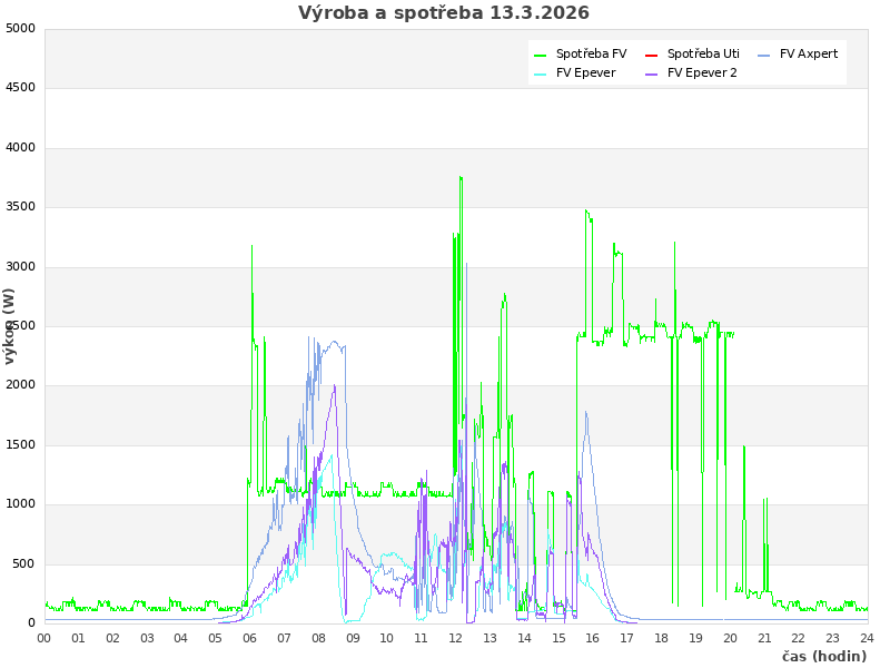 Studer (zasuvky): 1880 W, rele: 0 (0=baterie; 1=Uti)