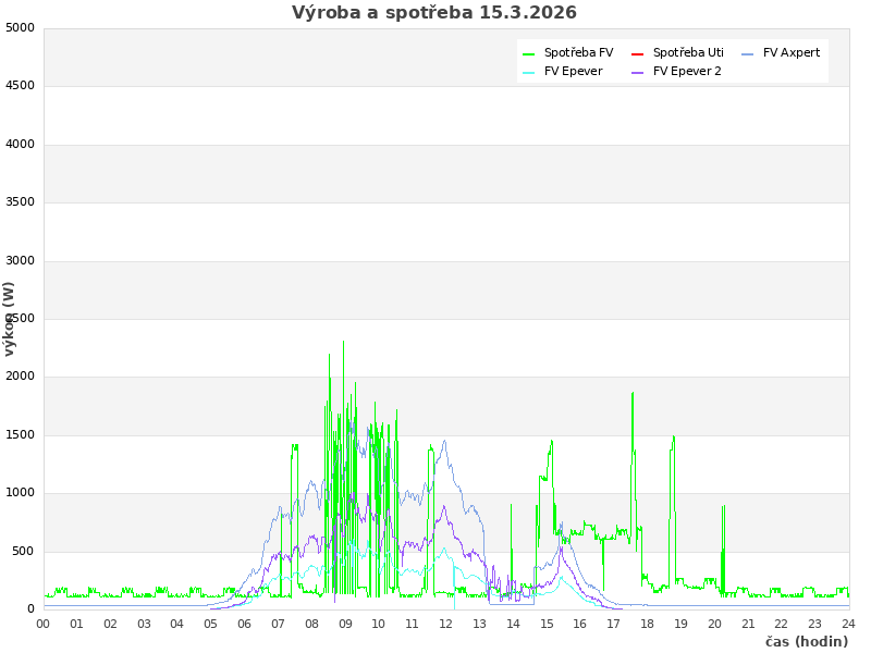 Studer (zasuvky): 1151 W, rele: 0 (0=baterie; 1=Uti)