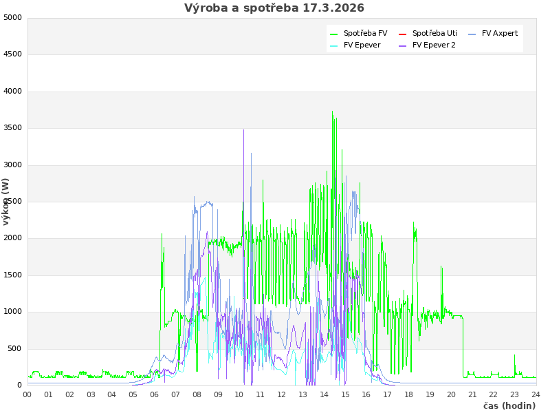 | Den | FV výroba (kWh) | Spotřeba (kWh) | Odběr ze sítě (kWh) | Soběstačnost (%) |