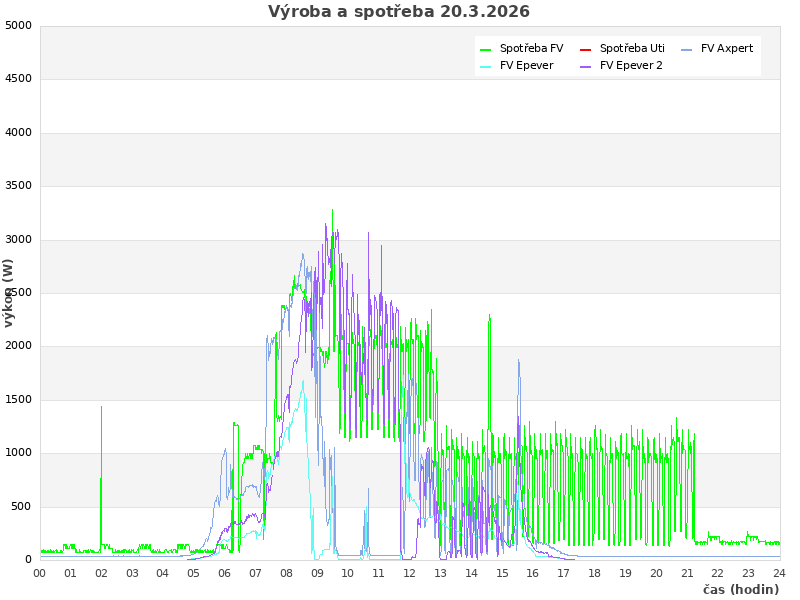 Studer (zasuvky): 1919 W, rele: 0 (0=baterie; 1=Uti)