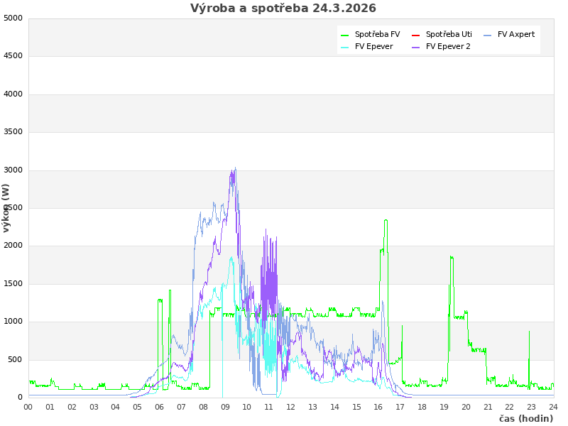 Studer (zasuvky): 1075 W, rele: 0 (0=baterie; 1=Uti)