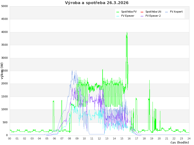 | Den | FV výroba (kWh) | Spotřeba (kWh) | Odběr ze sítě (kWh) | Soběstačnost (%) |